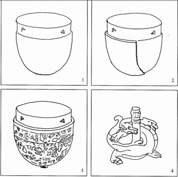 (5)再在泥模上刮去一層厚度,形成一定的空隙,這層空隙即是鑄青銅器的厚度。