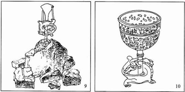 迄今為止,中國(guó)出土的早使用失蠟法鑄造的青銅器,是1979年出土于河南淅川縣楚國(guó)令尹子庚墓的云紋銅禁(圖8),而在云紋銅禁被發(fā)現(xiàn)前,曾侯乙墓出土的尊盤(pán)(圖9)一直被認(rèn)為是早使用失蠟法鑄造的青銅器。