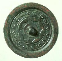 這種銅鏡的特殊性在于,當(dāng)有平行光照射在不透明的鏡面時(shí),鏡面的反射投像,便能影現(xiàn)出鏡背的紋飾和銘文。這種鏡子也叫透光鏡(圖10-11),出現(xiàn)在西漢時(shí)期,正面呈微凸形狀。透視現(xiàn)象的出現(xiàn),是由于在鑄造時(shí)的冷卻反應(yīng)與鏡面研磨加工過(guò)程中,所產(chǎn)生的鑄造應(yīng)力與彈性應(yīng)變所產(chǎn)生的效果,終能使鏡面發(fā)生光程放大作用,產(chǎn)生出神奇的鏡背圖案的透光效果。